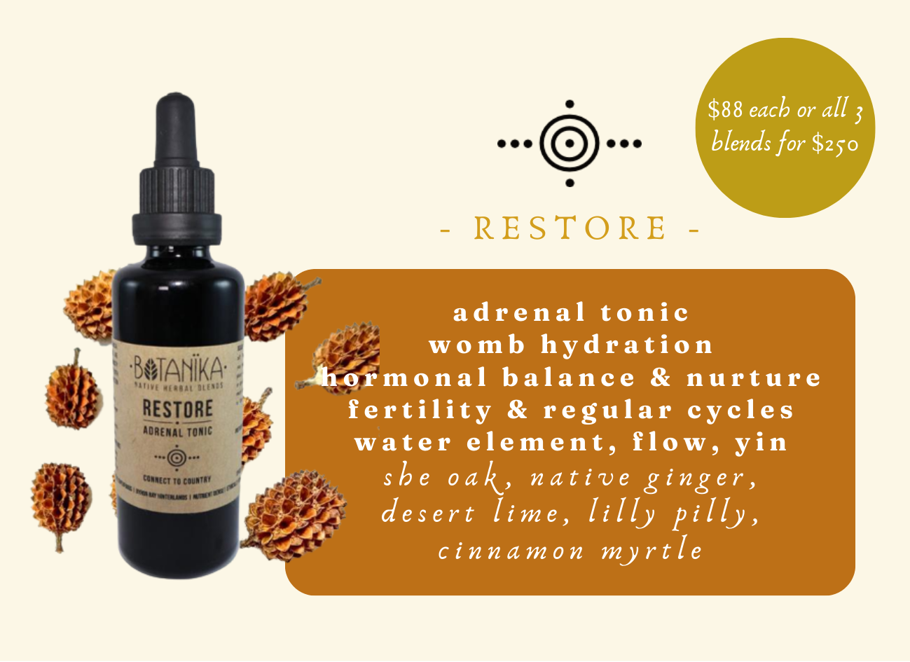 Restore adrenal tonic comprises of the following native superfoods, traditionally used & may support with: